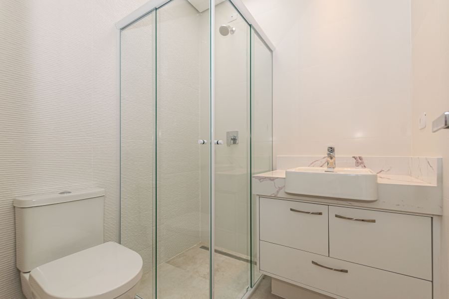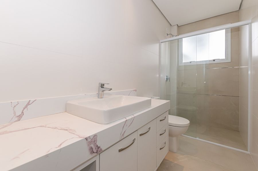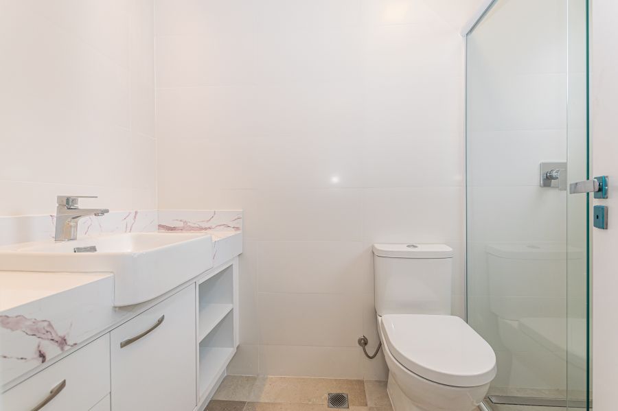 Acabamentos de Alto Padrão: Requinte em cada detalhe com metais Deca e Kohler, mármore Branco Paraná, porcelanato e pisos vinílicos de alta resistência.