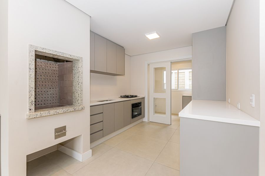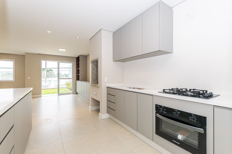 - Espaço Gourmet: Churrasqueira integrada a cozinha, em alvenaria com acabamento em granito, perfeita para receber com elegância.